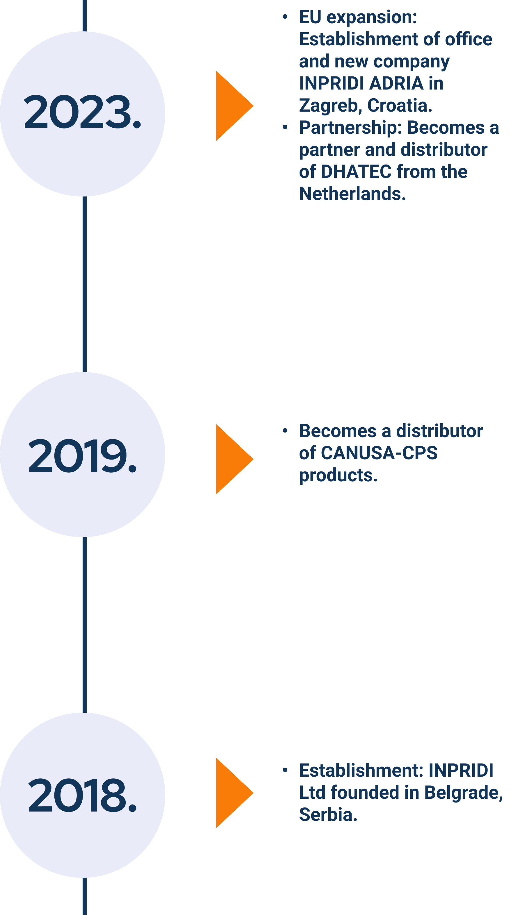 The key moment for our company was the year 2023, when we expanded to the European Union. With the establishment of INPRIDI ADRIA in Zagreb, Croatia, we continued to expand our presence and capacity to provide services in the region. With this step, we have become even more accessible to our clients and partners in Europe.